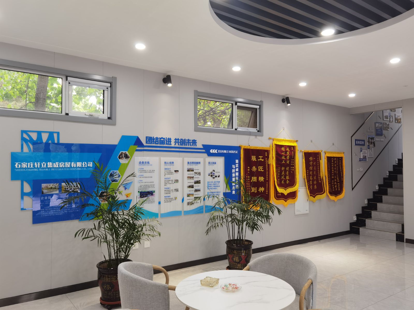 在石家莊軒立集成房屋有限公司的3號(hào)樣板樓中,掛滿了很多錦旗和榮譽(yù)資質(zhì),滿墻的榮譽(yù)承載著軒立以往努力的成績(jī),是軒立全體員工共同努力發(fā)展的體現(xiàn),也是軒立深耕輕鋼建筑行業(yè)十年的見證。